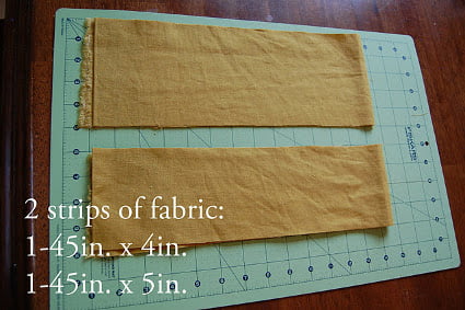 - Dos trozos de tela, uno de 4cm x10cm y otro de 4cm x13cm