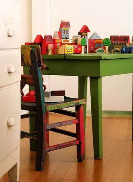 Aquí os mostramos algunas imágenes de habitaciones infantiles con estilo vintage, con objetos y cosas cotidianas, cosas que tal vez serían descartadas. Como se ve, el color tiene una gran importancia.