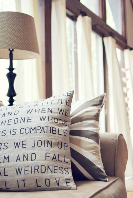 Los objetos decorativos con letras están muy en boga estos días. Ya sean afiches con frases, cuadros con la letra de tu canción favorita o vinilos decorativos con tu poema preferido, los objetos tipográficos son especialmente codiciados estos días. Inspirada en estos cojines, la autora del blog Wit&Whistle nos propone esta hermosa labor: cojines con letras para decorar tu sofá.