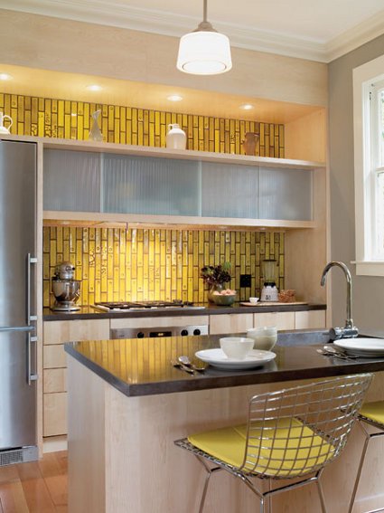 En cuanto al tamaño, los azulejos grandes son los que están en boga para las cocinas contemporáneas, mientras que para las paredes, los azulejos pequeños y delgados dispuestos en orientaciones originales son los preferidos para obtener un look moderno y vanguardista.