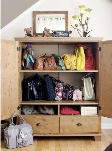 Hay un rasgo compartido por casi todas las mujeres del mundo: la compulsión de adquirir muchos bolsos y zapatos, de todos los colores y estilos. Y es que es fantástico disponer de una gran cantidad de modelos de zapatos para combinar con cualquier atuendo y ocasión, y por supuesto, un bolso que le haga juego. El tener un gran número de estos artículos representa un pequeño inconveniente: ¿Cómo organizarlos para que luzcan ordenados? No se si a ti te sucede, pero yo siempre termino usando el mismo bolso porque nunca recuerdo que tengo otros ocultos en la gran montaña de cosas sobre mi closet. Buscando en la red encontré estos creativos trucos para ordenar tus bolsos. Revísalas, seguro habrá alguna que se ajuste a tus necesidades.
