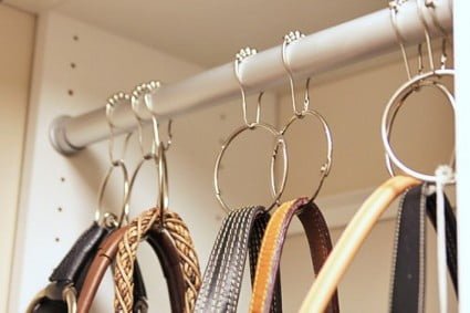 Si consideras que tus bolsos son tan hermosos que deben ser exhibidos y tienes suficiente espacio, estas pequeñas repisas, una para cada uno, resultan ideales. ¿No tienes espacios en los entrepaños del closet, pero si en la barra para colgar ropa? entonces coloca ganchos como estos para colgar tus bolsos y aprovechar el espacio vertical.